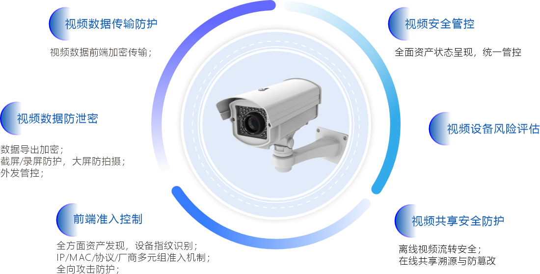 打造“资产准入、边界防护、调阅安全”三位一体的视频监控安全,构建一体化的安全防护体系。